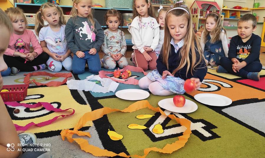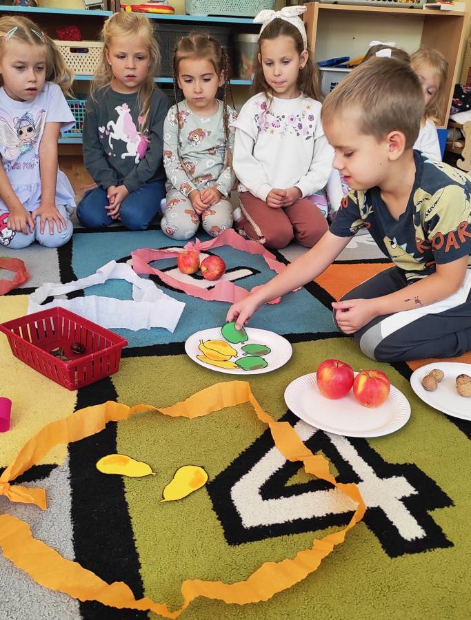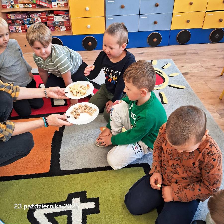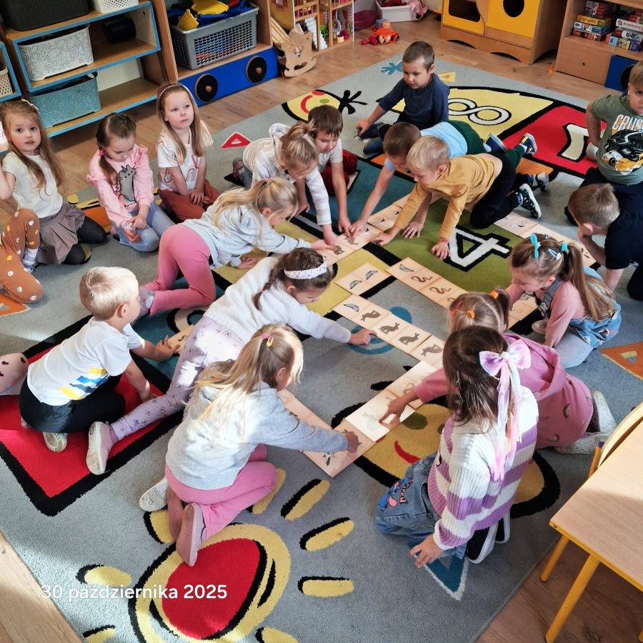 Miesiąc październik rozpoczęliśmy tematyką związaną z jesienią. Wzbogaciliśmy naszą wiedzę oraz słownictwo na temat darów jesieni oraz życia zwierząt żyjących wokół nas. Podczas spacerów rozpoznawaliśmy gatunki drzew i krzewów. Dzieci utrwaliły rozróżnianie prawej i lewej strony swojego ciała. Podczas zajęć rozpoznawaliśmy zapachy i smaki owoców, przypraw, warzyw oraz dowiedzieliśmy się jakie przetwory na zimę można z nich przygotować. W tym miesiącu poruszaliśmy tematykę bezpieczeństwa podczas spacerów oraz utrwaliliśmy znajomość numerów ratunkowych. O tym jak dbać o nasze zdrowie opowiedziała Pani dietetyk, która była naszym gościem w przedszkolu. W tym miesiącu dzieci poznały również litery O,o, L,l, A,a oraz cyfry 1,2. Zapraszamy do galerii przedszkolnej.