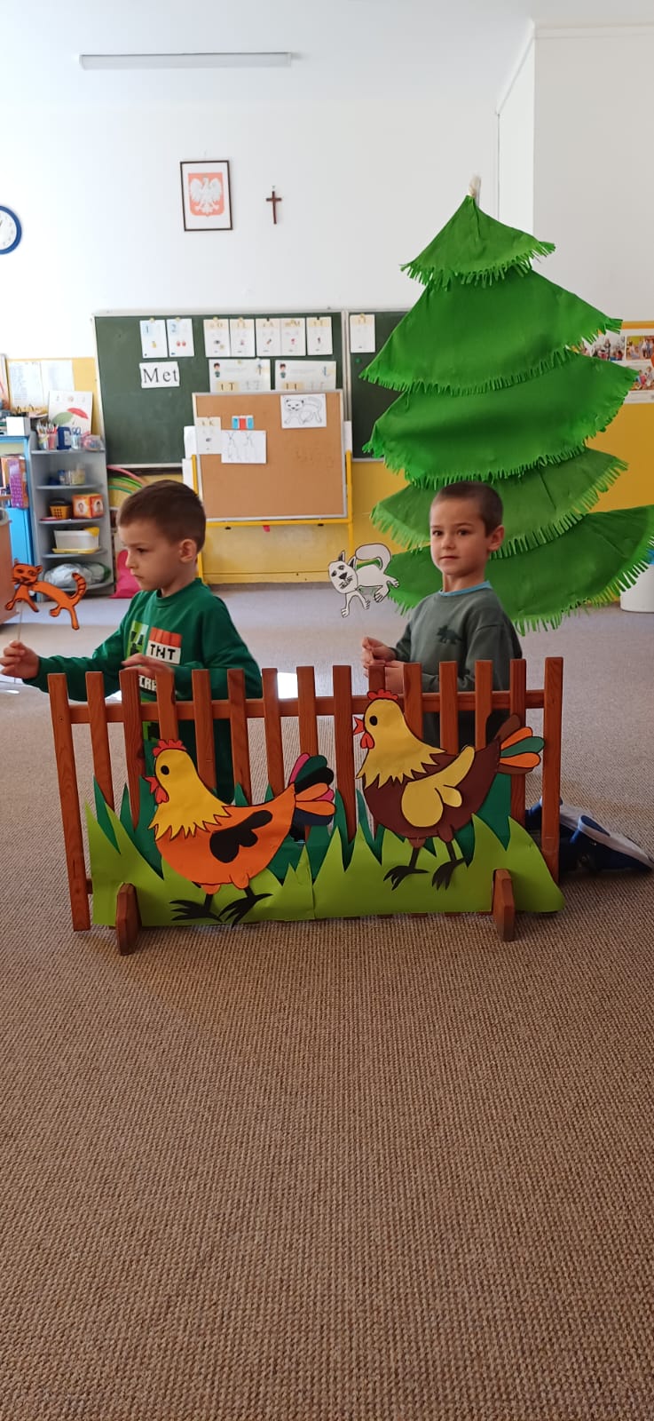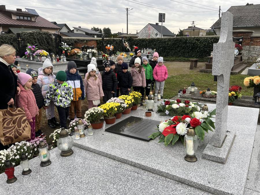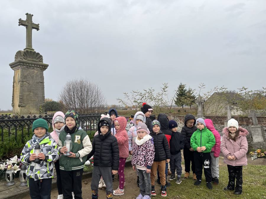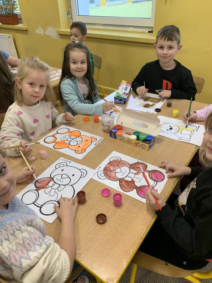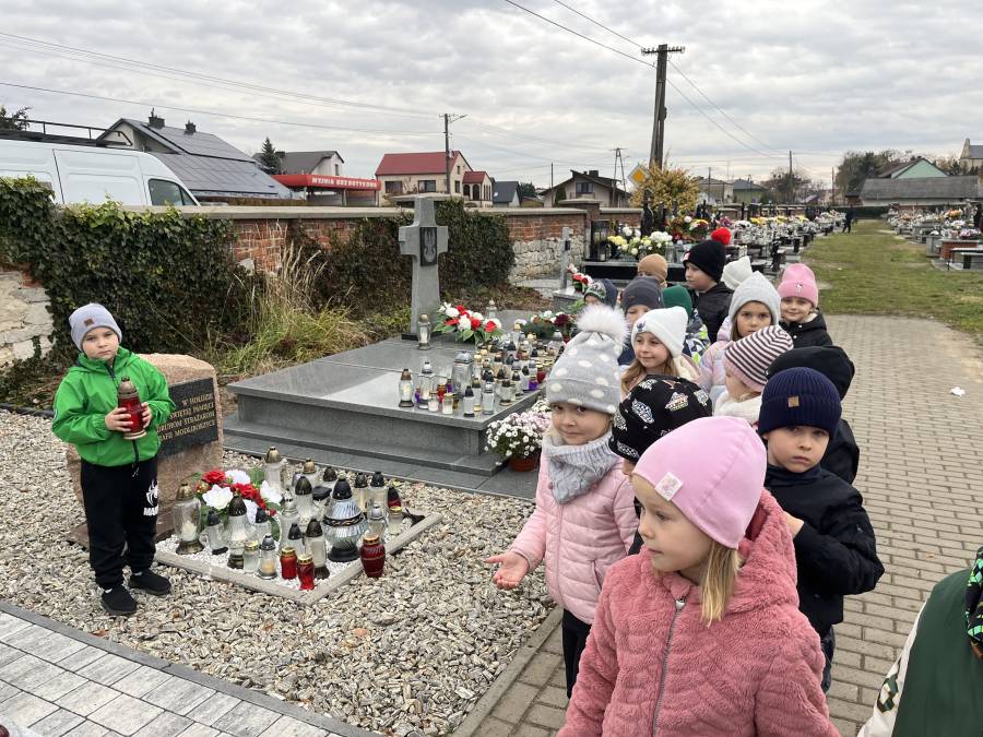 Listopad był miesiącem, w którym wspominaliśmy tych, którzy odeszli a wyjście na cmentarz, zapalenie zniczy na grobach żołnierskich było wspaniałą lekcją historii dla naszych sześciolatków. W związku ze Świętem Niepodległości utrwalaliśmy wiadomości o naszym kraju i naszych symbolach narodowych. Braliśmy udział w zbiorowym śpiewaniu hymnu państwowego. W minionym miesiącu poznaliśmy różne bajki i baśnie zarówno te dawne jak i współczesne. Świetnie bawiliśmy się przebierając się w stroje znanych postaci bajkowych. Rozmawialiśmy na temat pracy kucharza, piekarza i cukiernika, a także zastanawialiśmy się, kim jest wynalazca. Zastanawialiśmy się co to jest nauka i co pomaga nam w uczeniu się. Obchodziliśmy ŚWIĘTO PLUSZOWEGO MISIA, także wyjeżdżaliśmy do Domu Kultury w Kraśniku na musical OCEAN TO NASZ DOM. Poznaliśmy litery: t, T, i, I, u, U, k, K oraz cyfry: 3 i 4. Rozwijaliśmy swoją kreatywność i wyobraźnię wykonując ciekawe prace plastyczne.