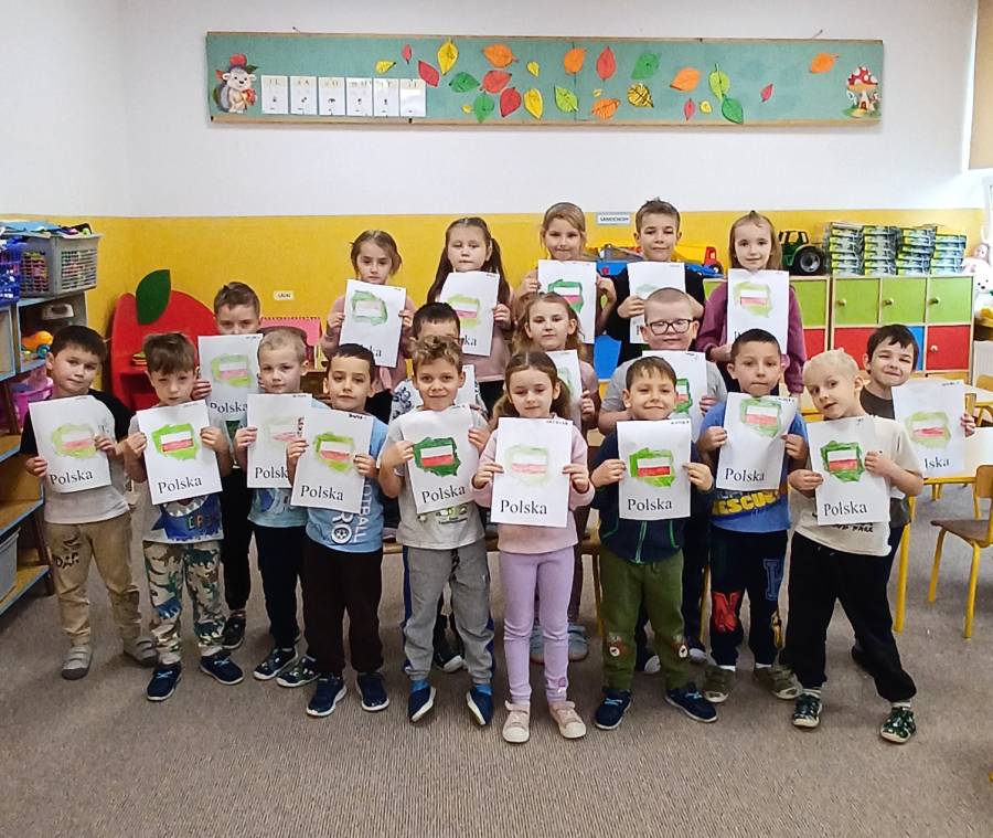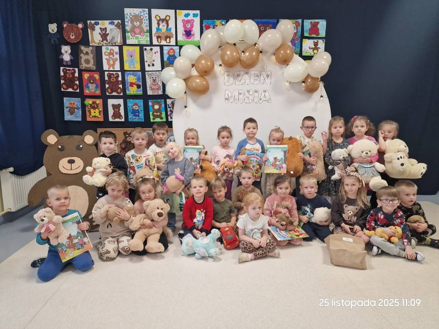Listopad ? chociaż jest miesiącem szarym i burym, wcale nie ponurym. To właśnie listopad okazał się dla naszej grupy pięciolatków miesiącem pełnym różnorodnych działań i sukcesów artystycznych, patriotycznych oraz ruchowych. Dzieci rozwijały umiejętności poznawcze, poznając litery t, T, i, I, u, U, k, K oraz liczby 3, 4. W tym miesiącu towarzyszyła nam także tematyka baśni i bajek, inspirowały nas spotkania z nauką oraz zajęcia uświadamiające, że wszyscy jesteśmy tacy sami. Z radością celebrowaliśmy również temat Pluszowego Misia, który pozwolił dzieciom wyrażać emocje i budować poczucie bliskości. Listopad był więc czasem wszechstronnego rozwoju ? od aktywności ruchowych i artystycznych, przez rozwijanie postaw społecznych, aż po wzbogacanie wiedzy o świecie i samym sobie.
