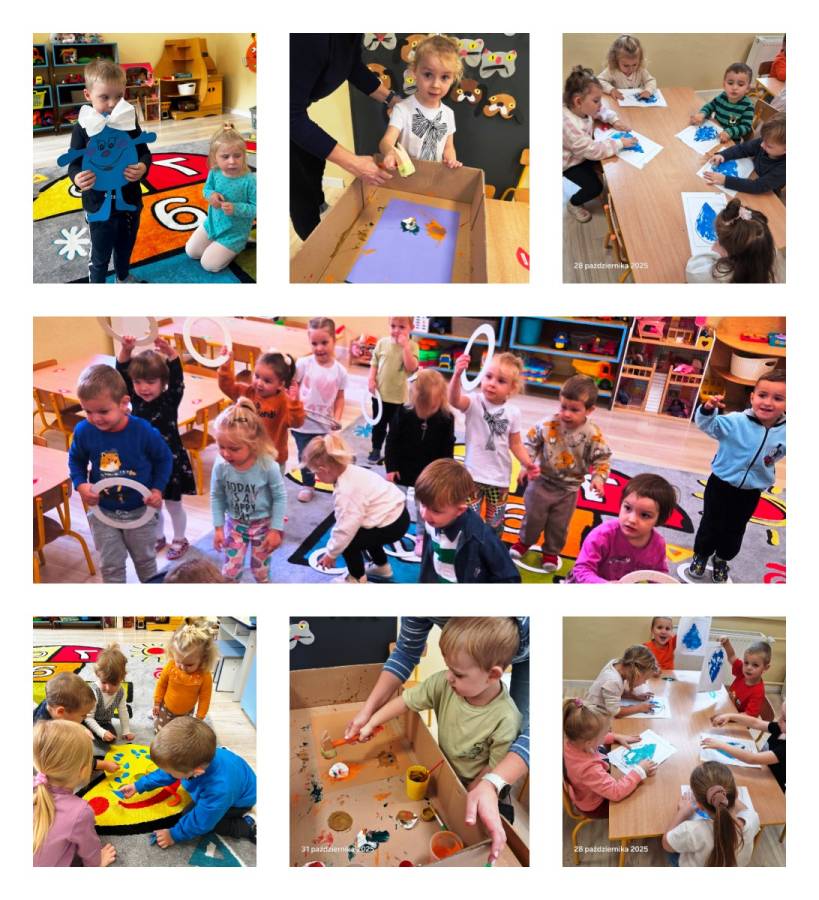 W październiku rozmawialiśmy o darach i zapachu jesieni. Rozmawialiśmy także o zwierzętach, które zapadają w zimowy sen. Rozpoznawaliśmy także emocje i uczyliśmy się jak radzić sobie, kiedy czujemy się źle. Dzieci poznały numery alarmowe, dowiedziały się także jak trzeba się zachować w sytuacji niebezpiecznej dla zdrowia. Dzieci poznały rodzaje lekarzy specjalistów. Mówiliśmy także o zdrowych nawykach żywieniowych. Przypomnieliśmy także jakie mamy zmysły. W ostatnim tygodniu października mówiliśmy o zwierzętach domowych, o tym jak powinno się nimi zajmować, kto to jest weterynarz, co to jest schronisko dla zwierząt, dlaczego warto przygarnąć zwierzątko ze schroniska, jak możemy pomóc zwierzętom w schronisku.