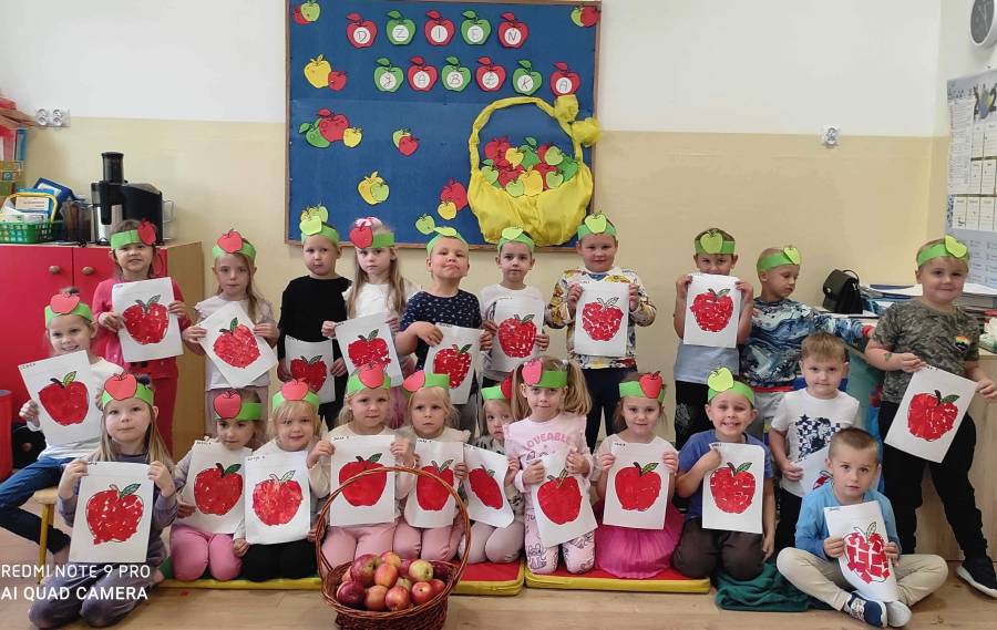 Pierwszy miesiąc nowego roku przedszkolnego upłynął nam bardzo szybko. Podczas zajęć rozmawialiśmy o naszych wakacyjnych pamiątkach. Wypowiadaliśmy się na temat zasad panujących w naszej grupie i bezpiecznej drodze do przedszkola. Rozmawialiśmy o emocjach i humorkach, które towarzyszą nam każdego dnia. Na podstawie opowiadania poznaliśmy sposoby radzenia sobie ze złością, smutkiem, ale również o okazywaniu radości. Podczas spacerów szukaliśmy babiego lata oraz pierwszych oznak zbliżającej się jesieni. Z przyniesionych owoców, warzyw i kwiatów stworzyliśmy kącik w naszej sali pt. DARY JESIENI. We wrześniu obchodziliśmy również DZIEŃ KROPKI, DZIEŃ JABŁKA oraz DZIEŃ CHŁOPAKA.