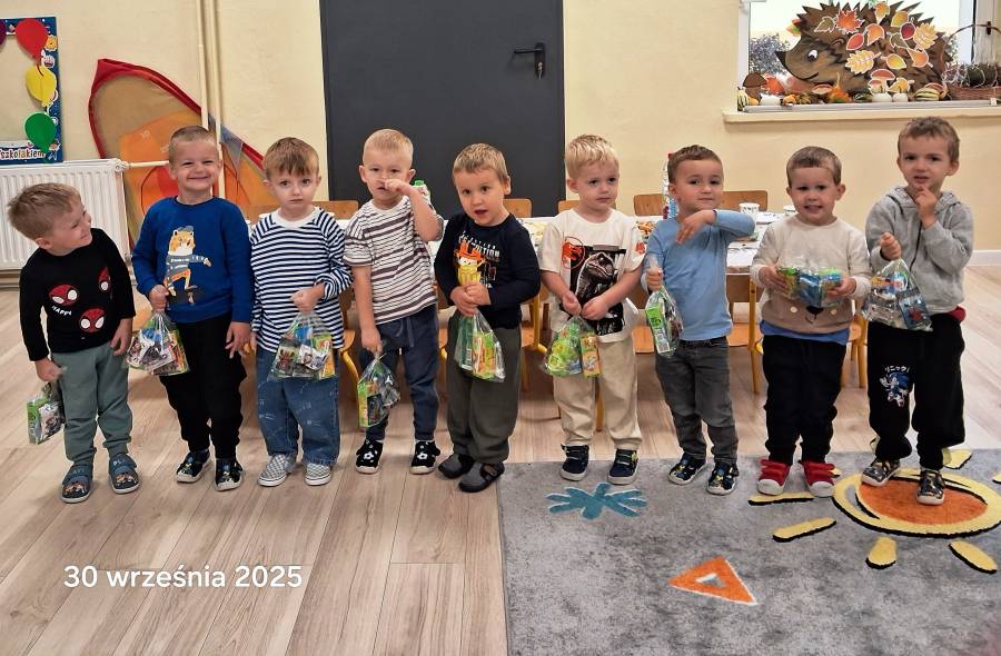Minął pierwszy miesiąc naszej wspólnej przygody w Maluszkach. Wrzesień to czas adaptacji dzieci w przedszkolnej grupie, przystosowania się do codziennego rytmu dnia, panujących zasad oraz poznania się wzajemnie podczas wspólnych zabaw. Na zajęciach rozmawialiśmy o emocjach jakie mogą towarzyszyć dzieciom oraz o sposobach radzenia sobie z nimi. Ustaliliśmy Kodeks przedszkolaka czyli zasady funkcjonowania w naszej grupie. Rozmawialiśmy o jesieni, porze roku, która właśnie do nas zawitała. Świętowaliśmy również w naszej grupie; DZIEŃ KROPKI, DZIEŃ PRZEDSZKOLAKA, DZIEŃ JABŁKA oraz DZIEŃ CHŁOPAKA.